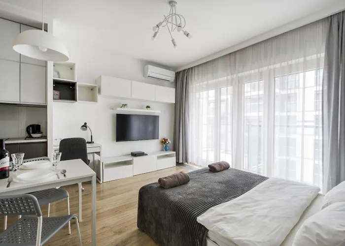 Jeśli chcesz zatrzymać w samym centrum Warszawy, Klimatyzowane Apartamenty Studio Mennica Residence Warszawa jest doskonałym wyborem, położonym 1 km od Pałacu Kultury i Nauki. Apartament z widokiem na miasto zapewnia gościom bezpieczeństwo, oferując całodobową ochronę.
